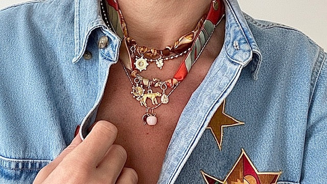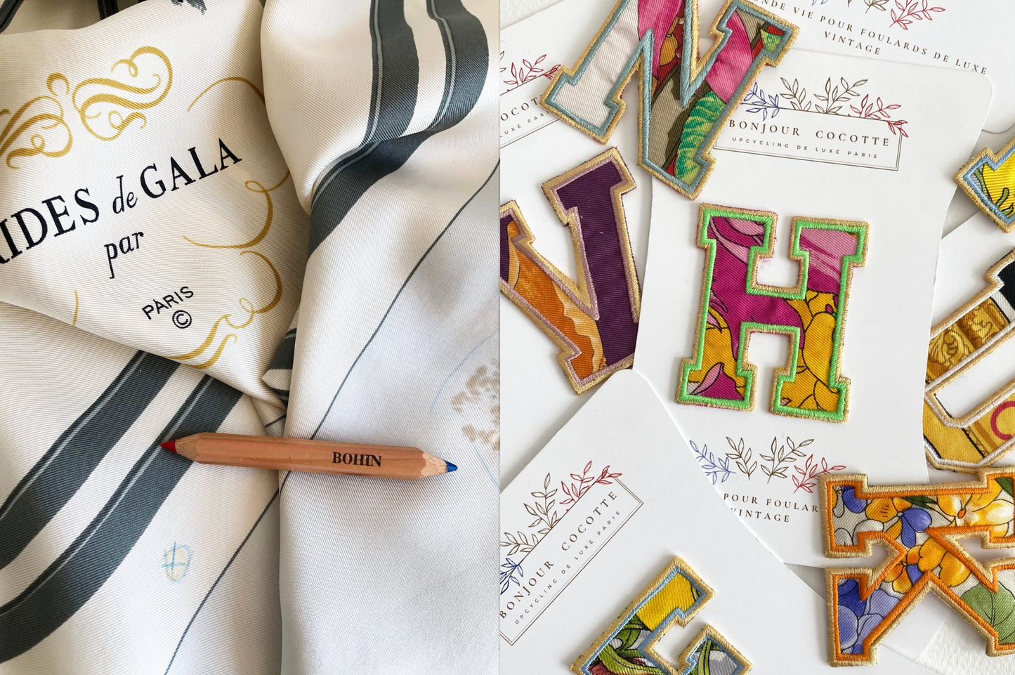 Chez Bonjour Cocotte, nous donnons une seconde vie aux foulards en soie de luxe vintage en les transformant en écussons et patchs brodés thermocollants. Sélectionnés avec soin, ces trésors intemporels deviennent des détails uniques pour personnaliser sa garde-robe.