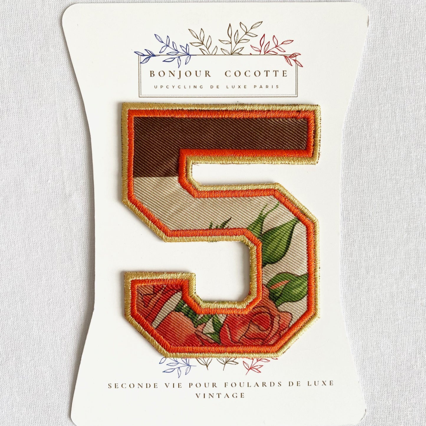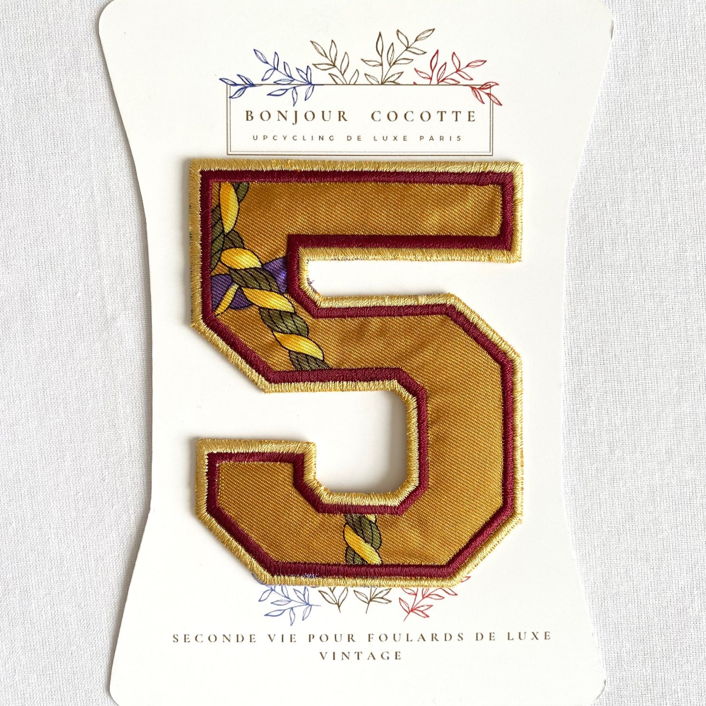Ajoutez une touche personnalisée à votre garde-robe avec nos écussons et patchs brodés thermocollants en soie, fabriqués à partir de foulards de luxe vintage revalorisés.